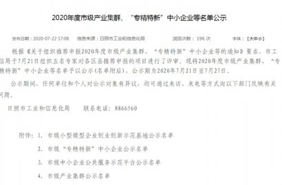 根據《關于組織推薦申報2020年度市級產業集群、“專精特新”中小企業等的通知》要求,市工信局組織專家對各區縣推薦申報的項目進行了評審。我公司通過2020年度市級“專精特新”中小企業評審。